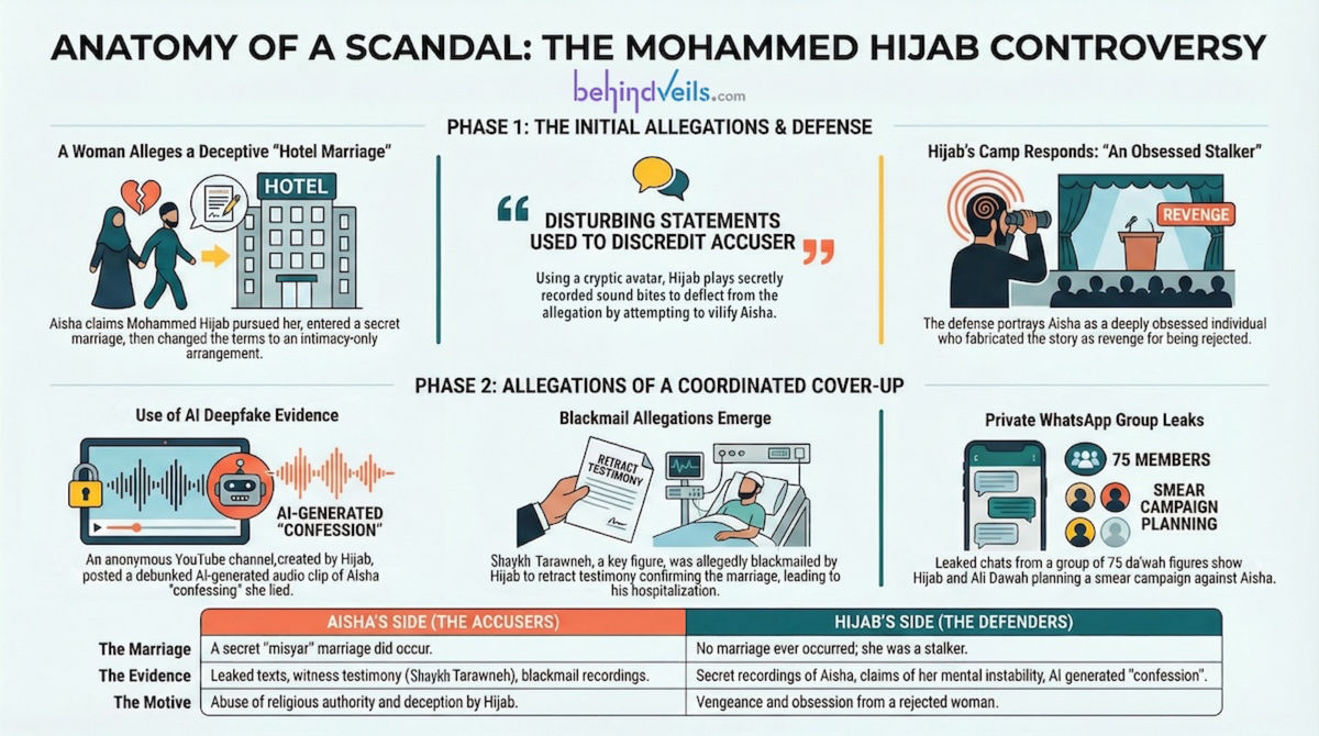 In this gripping and emotional narrative, we uncover the harrowing testimony of Sister Aisha — a devout Muslimah whose life was turned upside down by a secret marriage with one of the most prominent da’wah figures today, Mohammed Hijab. What began as a trust in spiritual leadership turned into emotional manipulation, betrayal, and abandonment.